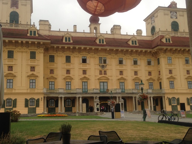 In der echt lässigen Lounge hat man einen einzigartigen Ausblick. Schloss Esterházy ist ein beeindruckendes, historisches vis á vis.