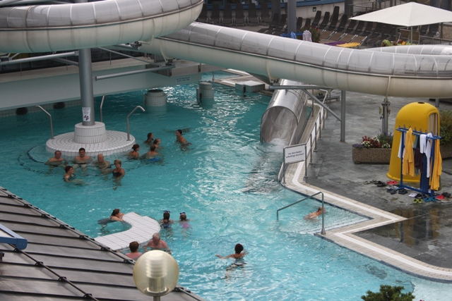 Die Nacht war kurz und dennoch waren alle fit und gut gelaunt. Eine der größten Hüttn wurde an diesem Drehtag besucht. Nämlich die Therme Loipersdorf .
