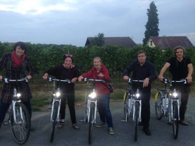 Viel Zeit haben wir uns nicht gegönnt in unseren Räumen. Spontan schwingten wir uns auf die E-Bikes, die uns Chefin Julia zur Verfügung stellte und radelten bequem zu einem Heurigen.