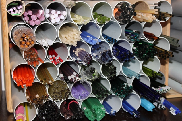 Beeindruckt von dem Rundang machten wir uns bereit fürs künslterische. Bevor geschüttet wird, bekommen wir noch eine Einblick in die wundervolle Welt der Glasperlenkunst.