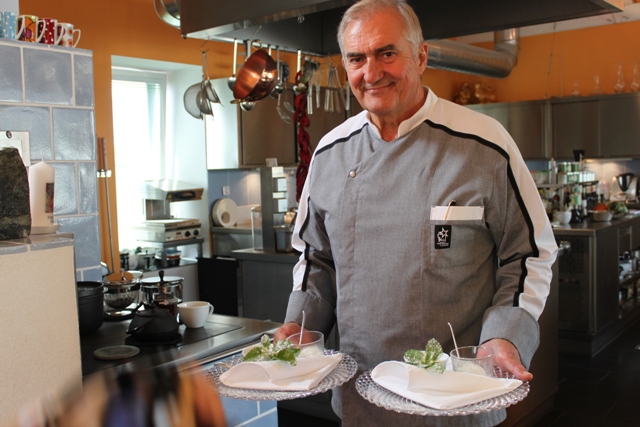 Doch als erstes haben wir im kleinen Salon Platz genommen. Chefkoch – nein vielmehr Kochkünstler Friedrich Gutscher erzählte und erklärte uns vorab die Speisenreihenfolge.