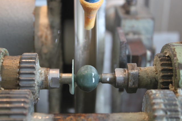 Wenn der Ton der Perlenschleifmaschine sich zuspitzt, ist die Perle rund. Tja, da steckt viel Erfahrung drinnen.