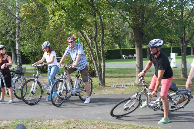 Pünktlich um 7 Uhr heißts „auf auf ihr Hasen“ – Frühstück und Drehbesprechung ist angesagt! Viel Zeit bleibt nicht, denn wir werden bereits am Camping-Platz in Jennersdorf erwartet. Die E-Bikes und ihre Fahrer stehen schon bereit – und schon heißts nach einer kurzen Begrüßung „Aufsitzen“ – im Großstadt-Dschungel der Anlage.