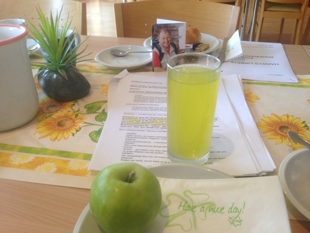 Harry ist erst in der Nachtangekommen und daher seh ich ihn erst am nächsten Tag beim Frühstück.