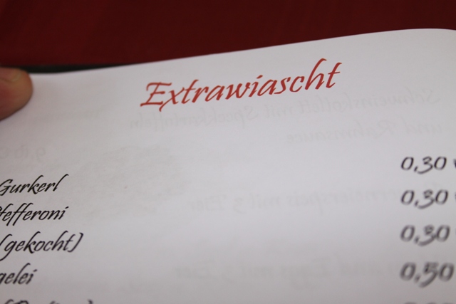 Lisa erzählt mir, dass hier auch schon mal eine Folge gedreht wurde – und dass es hier die weltbesten Grammelpogatscherl gibt. Pogatscherl gibt’s zwar heute nicht, dafür eine reichhaltige Karte. Da ich schon immer so ein „Extrawiaschtl“ war und bin,