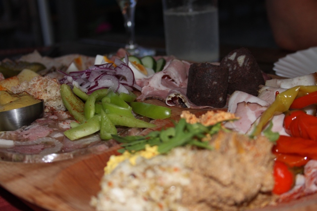 Da entscheide ich global für uns alle und bestell eine Platte, wo von allem a bissl was oben ist, zum durchkosten halt.