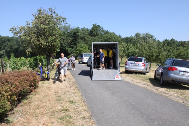Unser letztes Vehikel, das uns nach Oberpullendorf bringen soll. Die Stimmung am Set ist bestens, bei uns halt, denn die Monsterquads machen ein paar Probleme. Nach dem alles behoben ist machen wir uns auf den Weg.