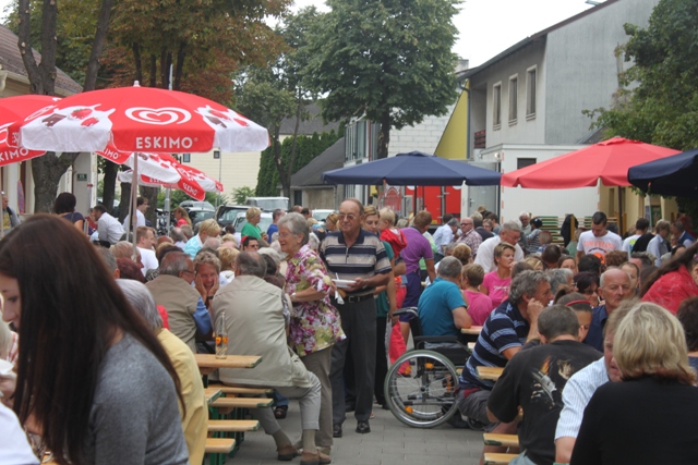 hats Günther auch schon wieder eilig. Günther ist total engagiert und hat die Befürchtung, dass wir ihm verdursten könnten. Daher nimmt er uns gleich mit zum beliebten „Blue Monday „in Lutzmannsburg. Wir lassen uns erklären, dass dieser Tag jener ist, der der letzte Tag des legendären Rotweinfestivals ist. Daher sehen wir uns gezwungen, nachdem Günther den Heurigen wieder schließen muss, einen „Sprung“ mit auf den Dorfanger zu gehen.